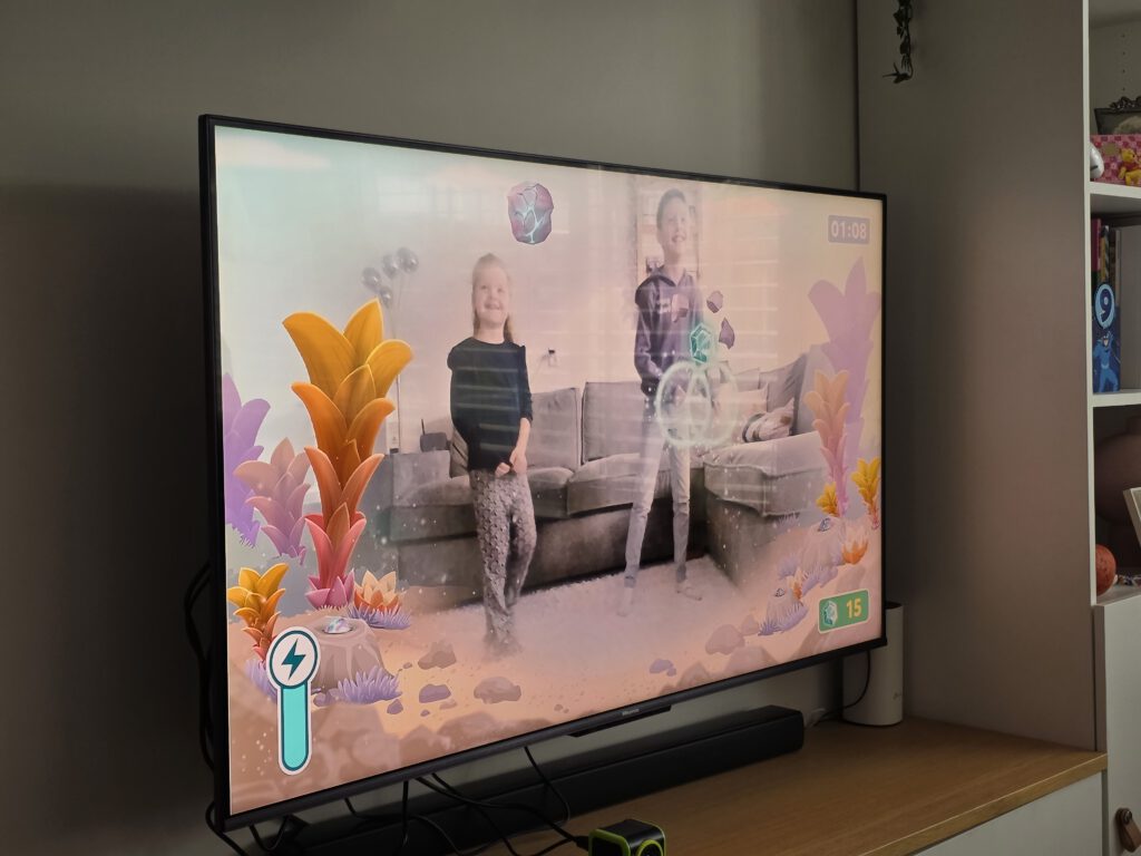 En waarom vinden wij hem als ouders leuk? We hadden de tablets en de spelcomputers al eventjes verbannen uit huis. De LeapMove is wel een “gameconsole”, maar op een leuke en bewegelijke manier. Ze zitten niet stil achter een schermpje. De spellen zijn ook educatief! Plus: als ouder kun je stiekem even op adem komen terwijl je kind vrolijk rondhuppelt. Win-win.