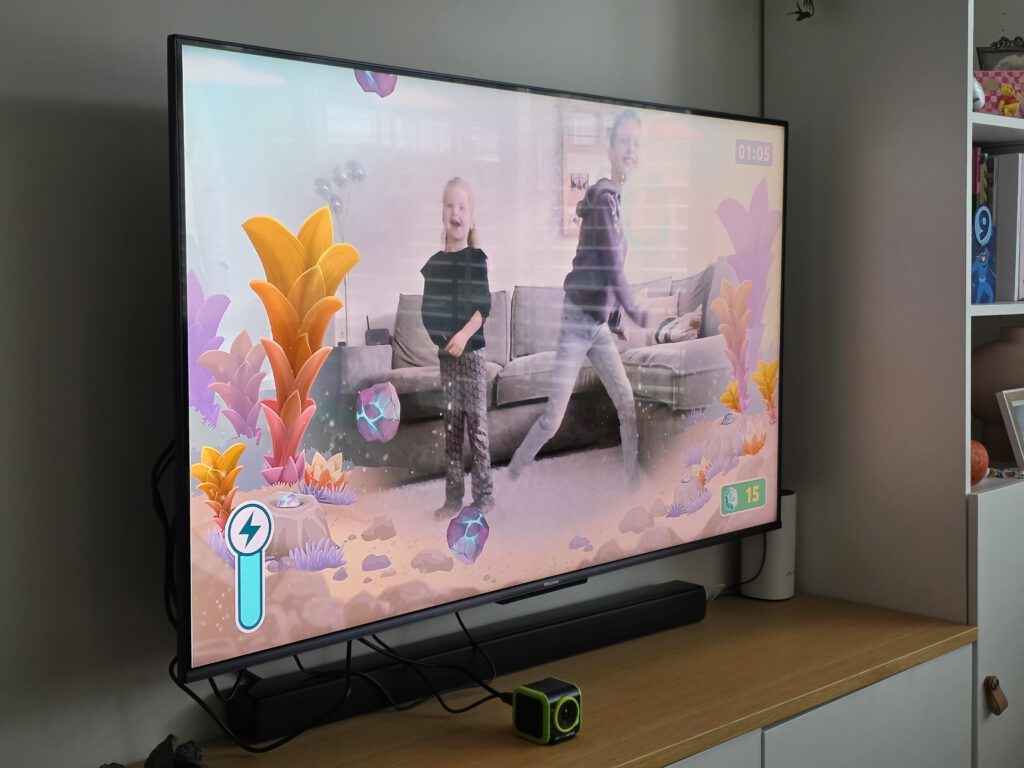 - Ze zien hun bewegingen terug op televisie in het spel, door hun handelen kunnen zij een spel voltooien.